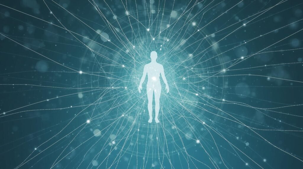 Biofield science studies the body as a dynamic electromagnetic and informational system. While the term remains under investigation, aspects of this field are measurable through EEG, ECG, and HRV. The model proposes that physiological systems communicate in coordinated patterns rather than isolation.